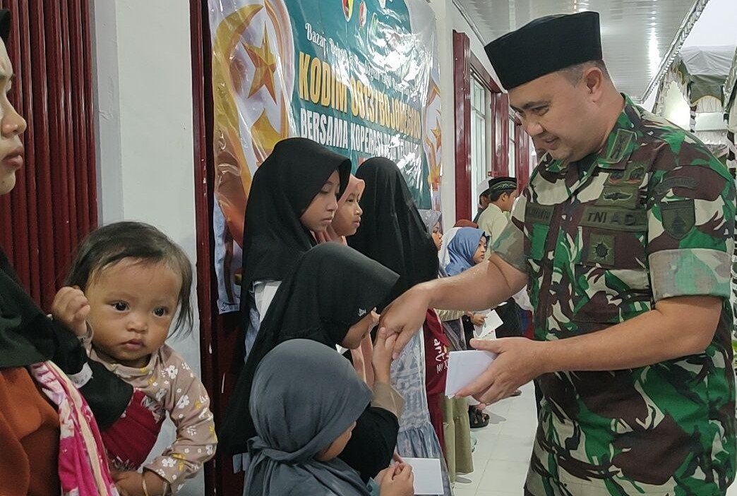 BOJONEGORO | Kodim 0813 Bojonegoro menggelar kegiatan bazar murah, serta bakti sosial santunan kepada anak yatim dan dhuafa dihalaman Koperasi Desa/Kelurahan Merah Putih (KDKMP) Desa Pungpungan Kecamatan Kalitidu Kabupaten Bojonegoro, Senin (2/3/2026).