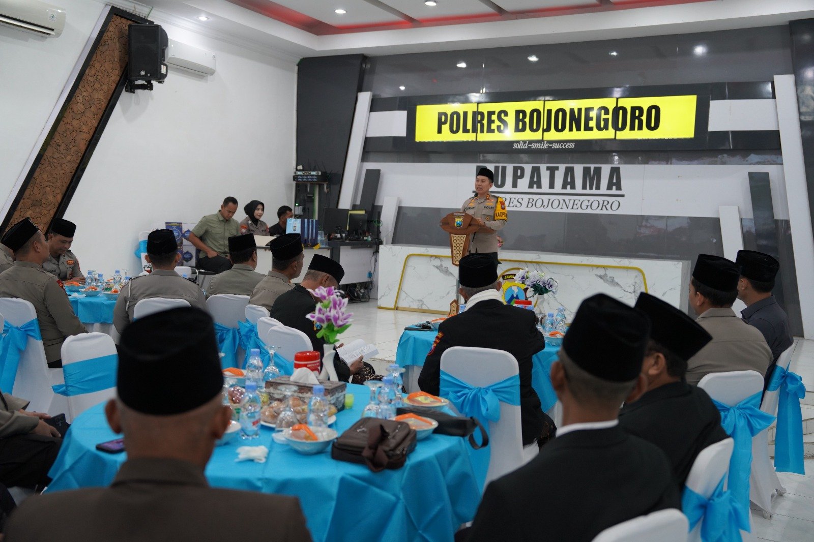 Mengusung tema “Bersama Membangun Negeri, Polri Untuk Masyarakat”, acara tersebut dihadiri Wakapolres Bojonegoro, para pejabat utama (PJU) Polres Bojonegoro, Ketua Dai Kamtibmas KH. Alamul Huda Masyhur, serta rombongan dai dan pendeta Kamtibmas dari berbagai wilayah di Kabupaten Bojonegoro.