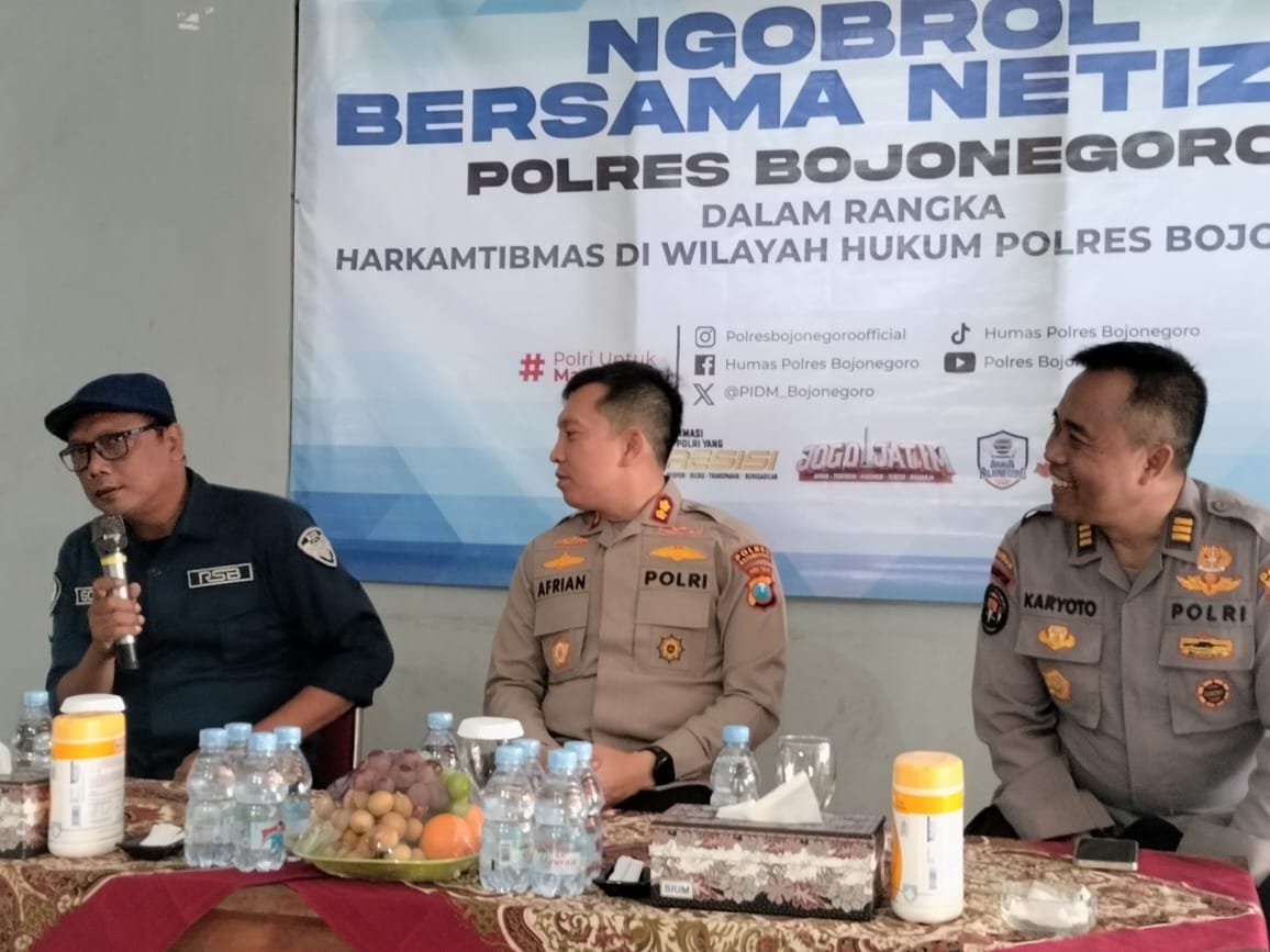 Agenda pertemuan Kapolres dengan Netizen mendapat apresiasi dan ucapan terima kasih oleh ketua Forum Komunitas Lintas Bojonegoro (FKLB) yang membawahi 11 komunitas penggiat di media sosial.